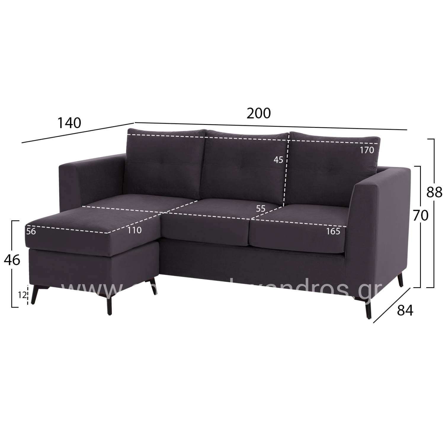 ΚΑΝΑΠΕΣ ΓΩΝΙΑ ΑΝΑΣΤΡΕΨΙΜΗ PONZA ΥΦΑΣΜΑ ΑΛΕΚΙΑΣΤΟ ΓΚΡΙ 200x140x88Υεκ.