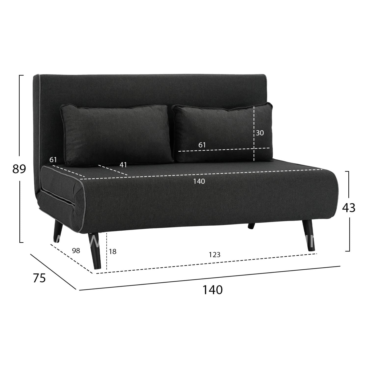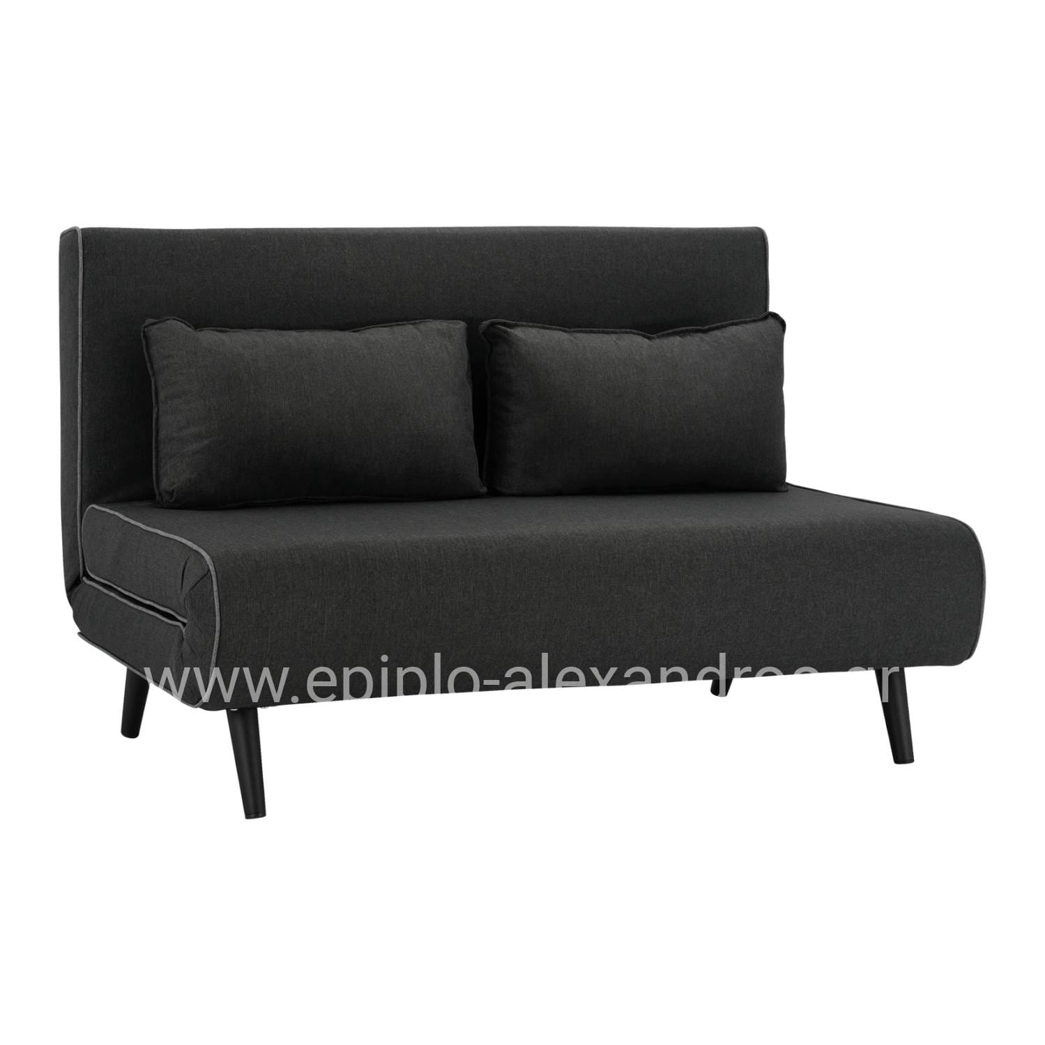 Καναπές κρεβάτι, διθέσιος,επενδεδυμένος με ύφασμα σε σκούρο γκρι απόχρωση 140Χ75Χ89Υ εκ.