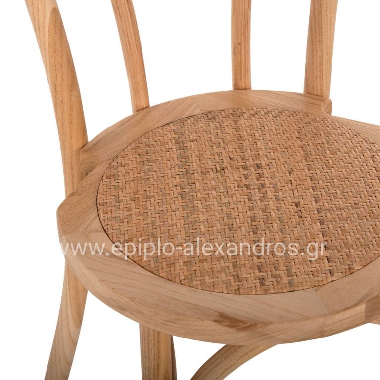 Το κάθισμά της είναι φτιαγμένο από φυσική ψάθα με χειροποίητη πλέξη η οποία στηρίζεται σε ξύλινη επιφάνεια.